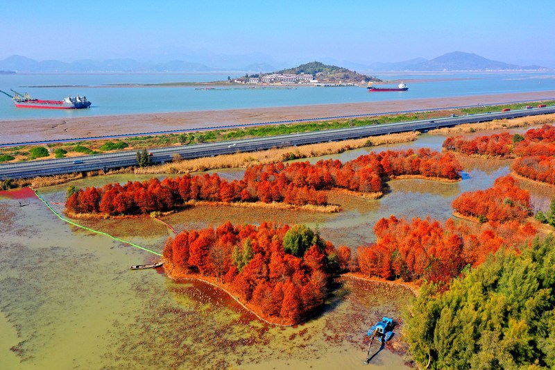 玉环漩门湾 水杉林进入最佳观赏期