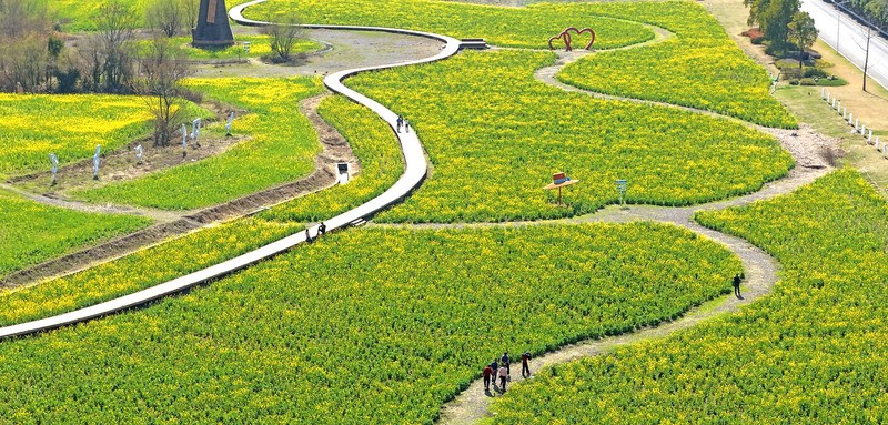 2月21日,仙居县白塔镇,田野上种植的油菜花盛开,与村庄和远山构成了一幅优美的生态田园画卷,成为新春市民、游客休闲、观光的网红打卡地。游客倘徉在油菜花海中赏花、拍照,感受美丽春光。