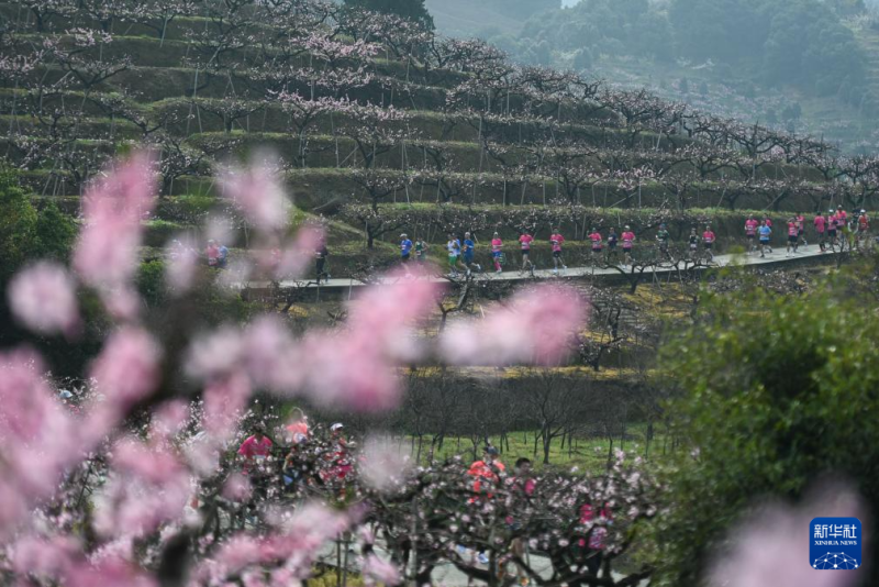 3月24日,参赛选手经过奉化区萧王庙街道林家村的桃园。当日,2024奉化桃花马拉松在浙江省宁波市奉化区举行。本届赛事设有全程马拉松、半程马拉松、欢乐跑三个项目。