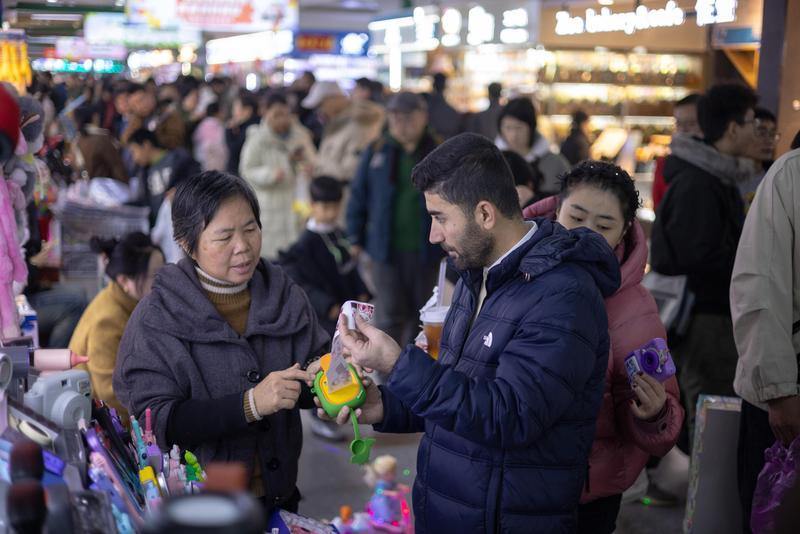 1月2日,义乌国际商贸城吸引中外游客、采购商前来选购,现场询价声此起彼伏、消费活力十足。