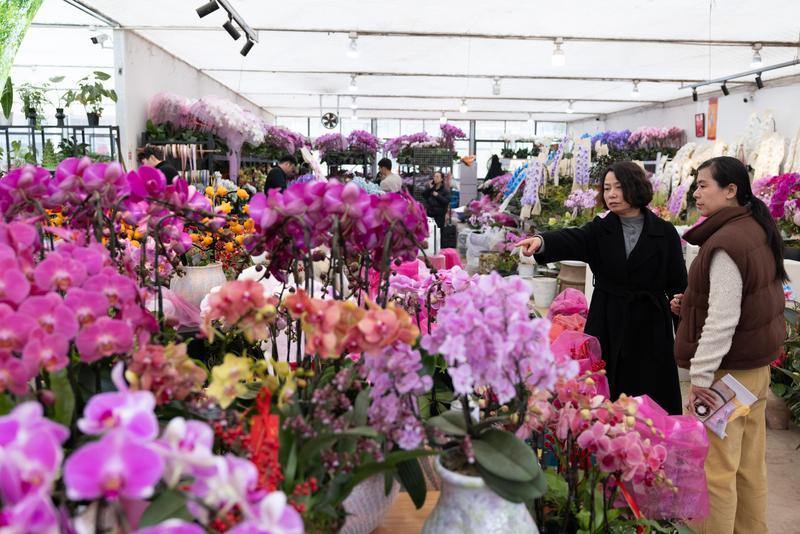 一盆盆蝴蝶兰或亭亭玉立,或簇拥盛放,持续吸引着顾客驻足挑选,为整个年花市场点亮了最明媚的风景,也映照出人们提前涌动的迎春喜悦。