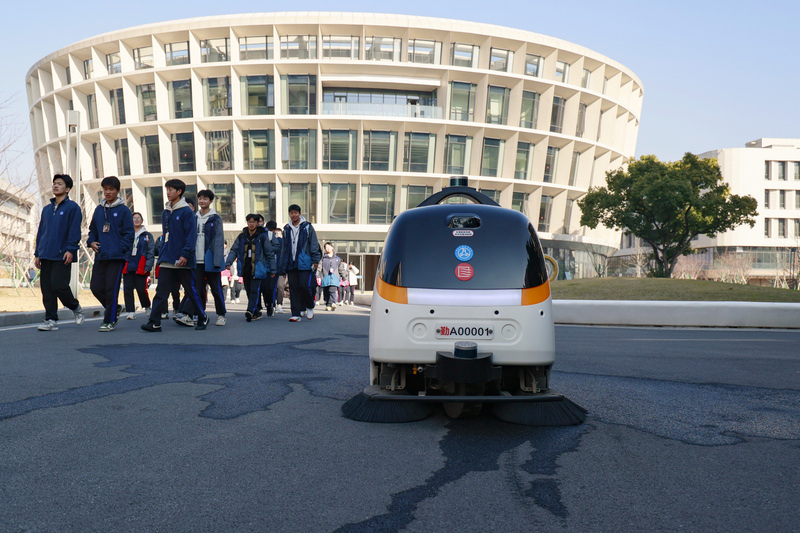 智慧保洁员“上岗” AI智能扫地机器人亮相浙江校园