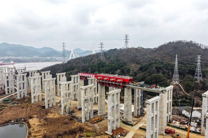 甬舟铁路:富翅岛首跨现浇梁完成浇筑