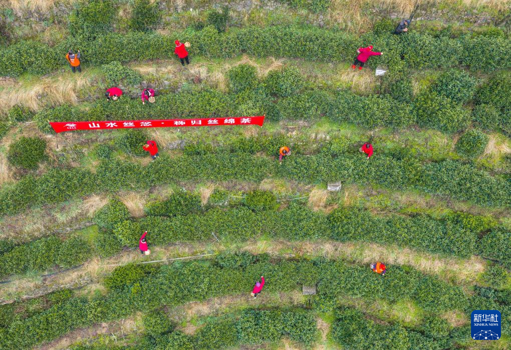 1月29日,三峡库区湖北省宜昌市秭归县“丝绵茶1号”早茶基地开园,当地茶农抢采茶叶嫩芽,供应春节市场。湖北秭归是“中国丝绵茶之乡”,近年来,当地茶农和华农大科研人员立足本地优势茶树品种,选育并推广“丝绵茶1号”特早生茶树新品种,助力乡村产业振兴。