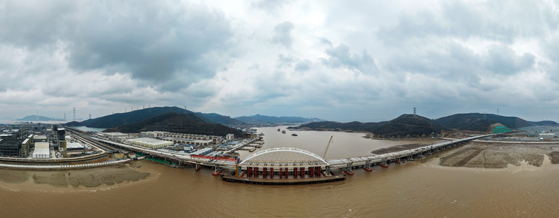 2026年2月7日下午,浙江省舟山市定海区金塘岛金鹏大桥建设现场,随着最后一片预制箱梁精准落位,金鹏大桥主线实现全线贯通。