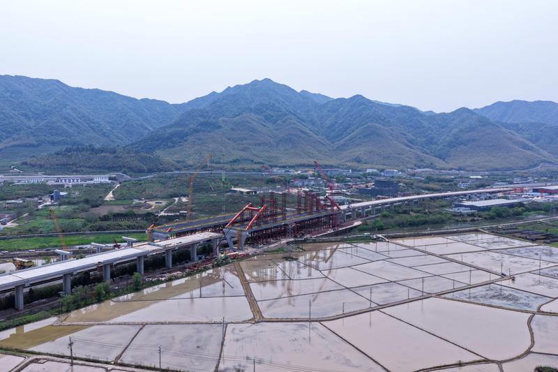 4月9日,甬台温改扩建宁波南段关键控制性工程——鄞奉高架东江系杆拱桥正在加紧建设。近日,东江系杆拱桥左幅系梁已顺利合龙,项目建设取得重大节点突破。 东江系杆拱桥是鄞奉高架桥的重要组成部分,也是省内首座高速公路网状吊杆系杆拱桥。该桥采用左右幅分离式设计,每座主桥跨度达190米,造型为新颖的“网状吊杆提篮拱”,技术复杂、施工难度大。主梁由系梁、横梁及小纵梁组成,施工采用“先梁后拱”的支架法原位拼装工艺,利用履带吊分段吊装,最大一节吊重约70吨。 据悉,甬台温高速改扩建宁波南段项目全长约69公里,总投资约190亿元,截至目前,项目累计完成投资111.83亿元,占总投资额的58.8%;总体形象进度累计完成54.5%。
