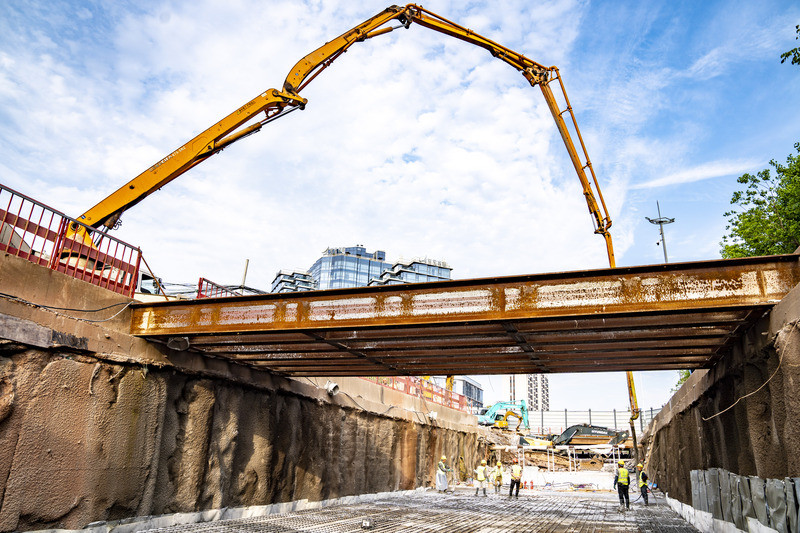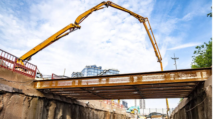 4月10日,浙江省金华开发区仙源路湖底隧道项目现场,中交城市投资(金华)有限公司的工作人员正在浇筑最后一块顶板。随着最后一块顶板浇筑完成,金华开发区仙源路湖底隧道主体结构全部完工,标志着这项备受瞩目的民生工程取得决定性进展。