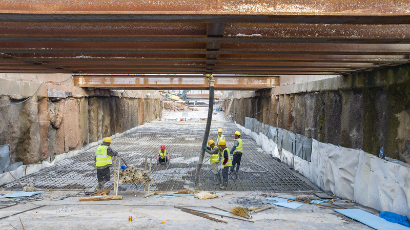 4月10日,浙江省金华开发区仙源路湖底隧道项目现场,中交城市投资(金华)有限公司的工作人员正在浇筑最后一块顶板。随着最后一块顶板浇筑完成,金华开发区仙源路湖底隧道主体结构全部完工,标志着这项备受瞩目的民生工程取得决定性进展。