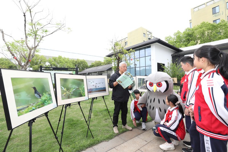 4月10日,绍兴上虞小越街道倪梁村,2026“翠鸣和合·羽飞华顶”第45届爱鸟周启动仪式暨“灵秀越湖·书香羽韵”主题巡展温情启幕,为春日乡村注入满满的生态活力。活动现场,憨态可掬的猫头鹰人偶化身“护鸟大使”,一亮相就收获了孩子们的满满喜爱,瞬间点燃了现场氛围。一幅幅生动鲜活的鸟类摄影作品整齐陈列,从灵动的鸣禽到矫健的猛禽,全方位展现了绍兴本土鸟类的多样之美与自然生机。鸟类保护专家现场开讲,手持科普手册,结合摄影作品为孩子们细致讲解鸟类习性、保护知识与相关法律法规,手把手教大家识别身边的野生鸟类,耐心解答孩子们的好奇提问,把专业知识转化为孩子们听得懂、记得住的自然课堂。 此次爱鸟周活动走进倪梁村,不仅为乡村孩子带来了生动的自然实践课,更以科普为纽带,推动爱鸟护鸟、守护生物多样性的理念在乡村落地生根,为建设人与自然和谐共生的美丽家园注入了鲜活力量。