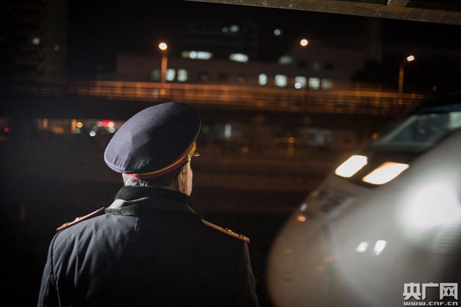 22:50,李凤强站长在迎接清华园站最后一班客运列车的到来。