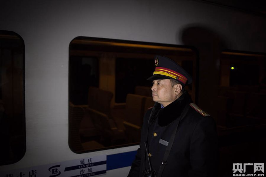 即使是最后一班岗,李凤强站长依旧一丝不苟地执行列车接送站程序,亲自到站台巡查。