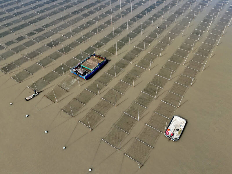 11月8日,在温州市洞头浅海海域的紫菜养殖区,紫菜养殖户正在忙着管护整理。眼下正值浙江省温州市洞头海域紫菜养殖的管护期,紫菜养殖区一派繁忙景象。