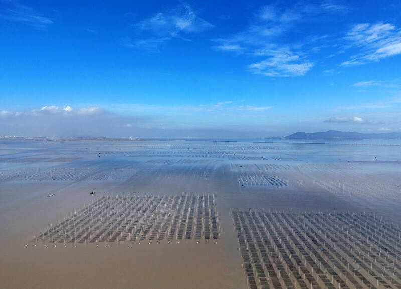 11月8日,在温州市洞头浅海海域的紫菜养殖区,紫菜养殖户正在忙着管护整理。眼下正值浙江省温州市洞头海域紫菜养殖的管护期,紫菜养殖区一派繁忙景象。