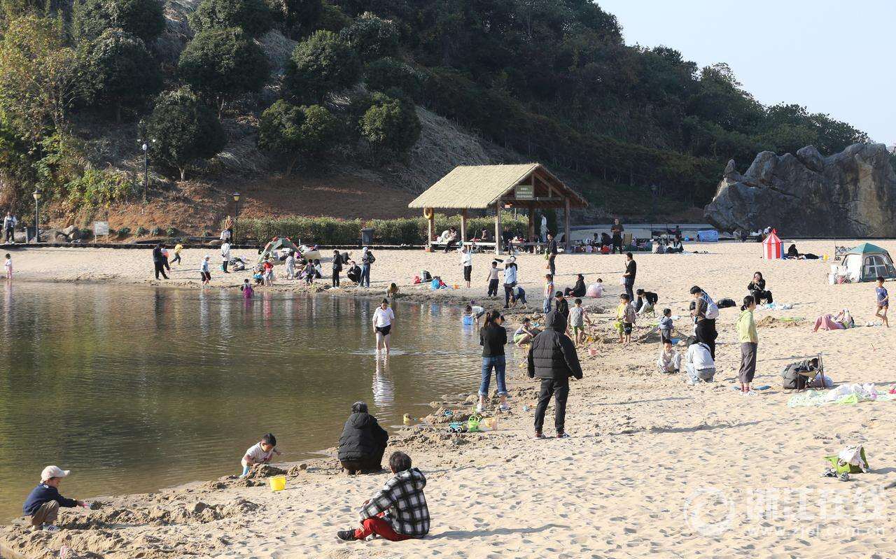12月7日是大雪节气,浙江气温持续回升至20℃以上。图为在杭州宝寿山景区,孩子们在暖阳下戏水、玩沙子。