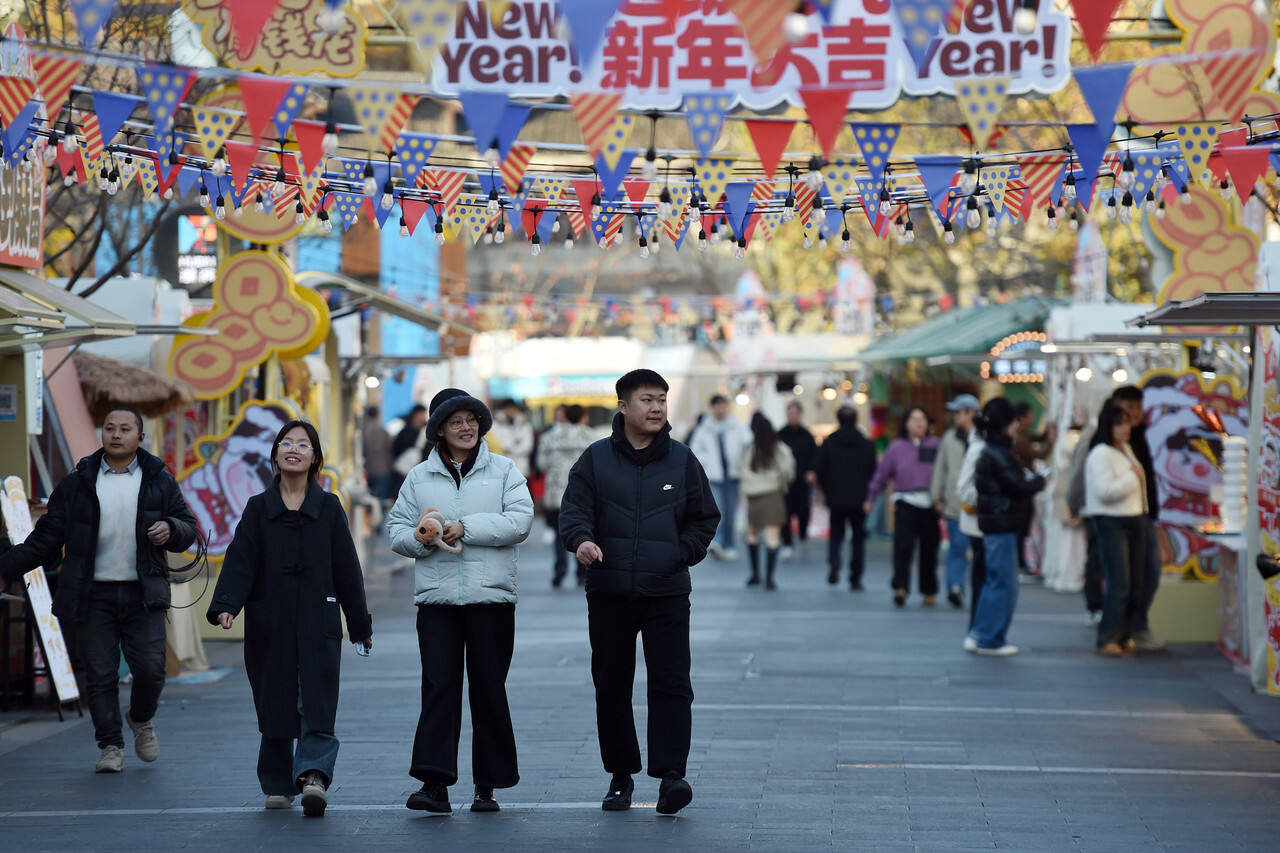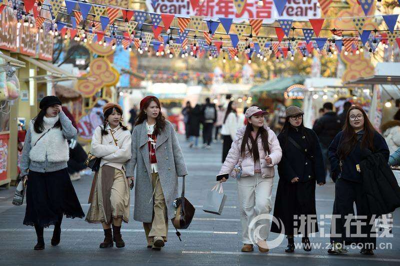 12月15日,杭州湖滨步行街的市集换上了“新年装”,喜庆饰品、潮玩手作、文创摆件与特色美食等摊位一字排开迎客,新年的氛围越来越浓厚。