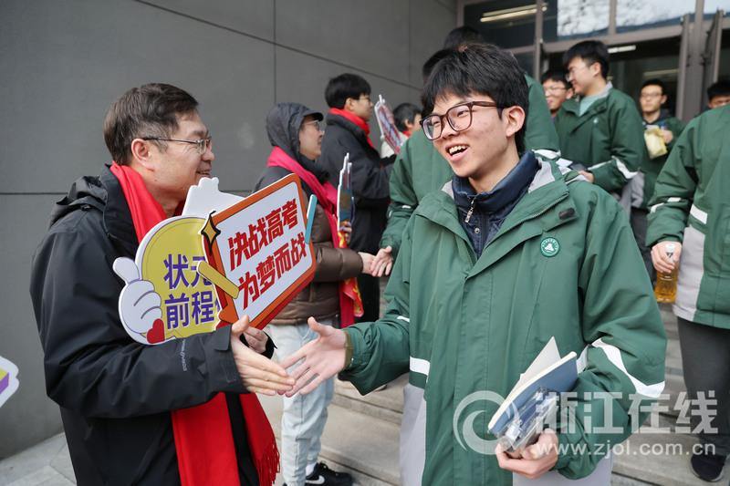 浙江在线1月7日讯(记者 魏志阳 栾兰)1月6日,浙江省2026年1月选考学考开启,杭州第二中学钱江学校考点考生陆续进场,纷纷与老师击掌加油打气。本次考试含高考外语、选考和高中学考,全省共有近64万考生报名,设77个考区、351个考点、近6.5万个考场,考试时间为1月6日—8日。
