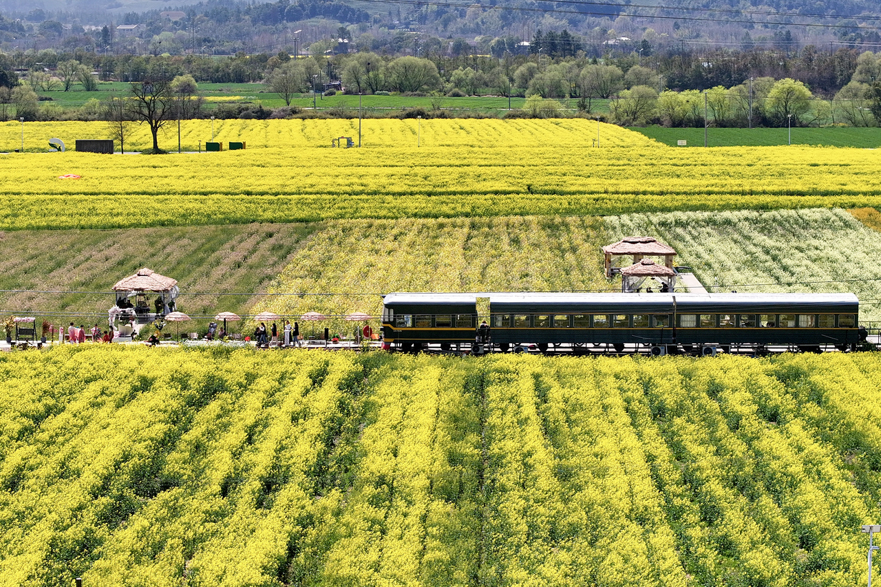 3月28日,安吉县天子湖镇镇晓云村的春日盛宴正在花油菜田间上演,稻田咖啡馆坐落油菜花海,游客围坐其间品咖啡赏春日美景,在明媚春光里放松身心,感受田园生活之美。拍友 潘学康 摄