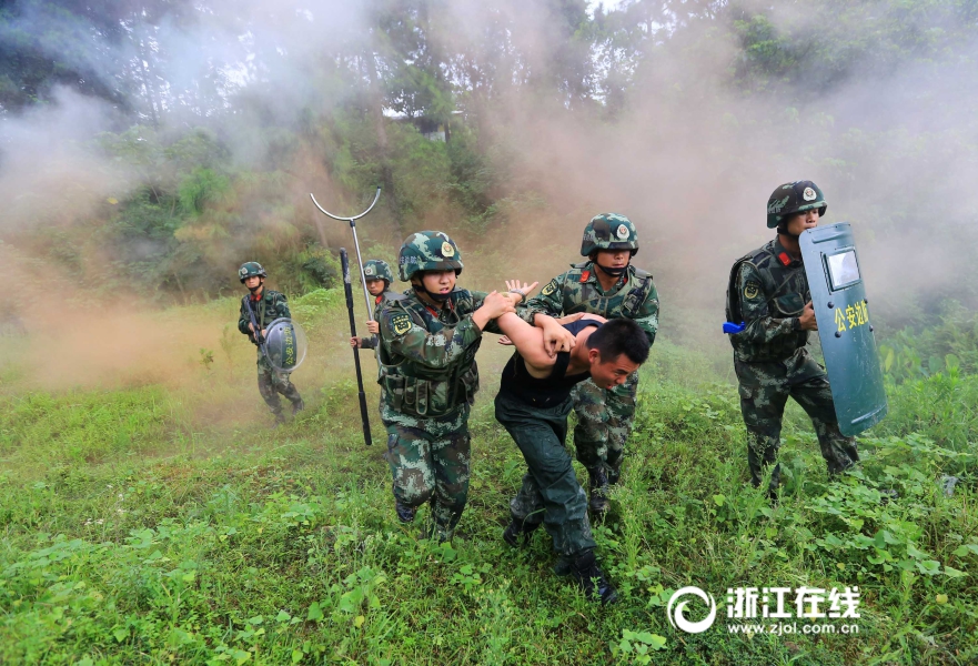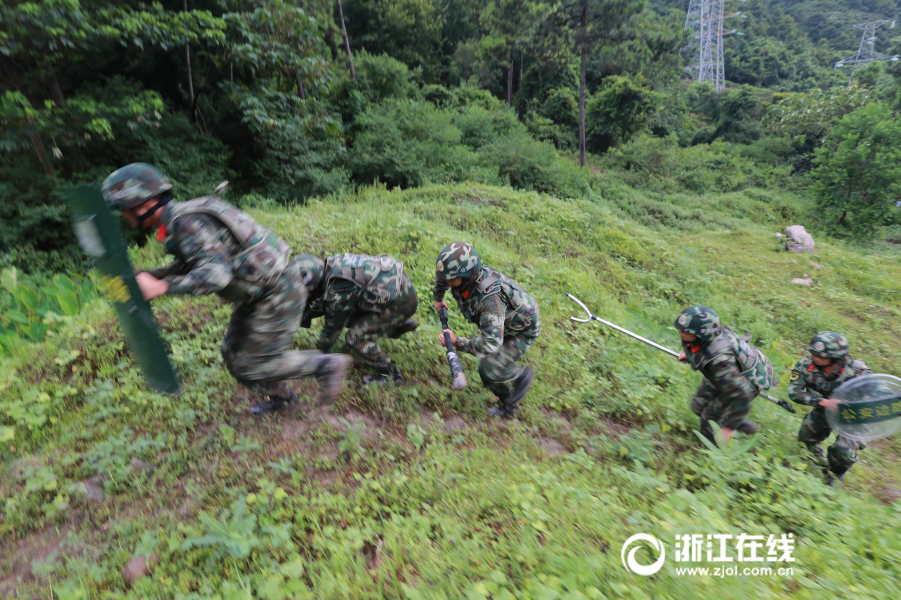 浙江在线8月2日讯(浙江在线拍友 汪凯 摄)7月31日,温州市公安边防支队组织50余名机动中队官兵开展应急力量远程增援暨处突演练。